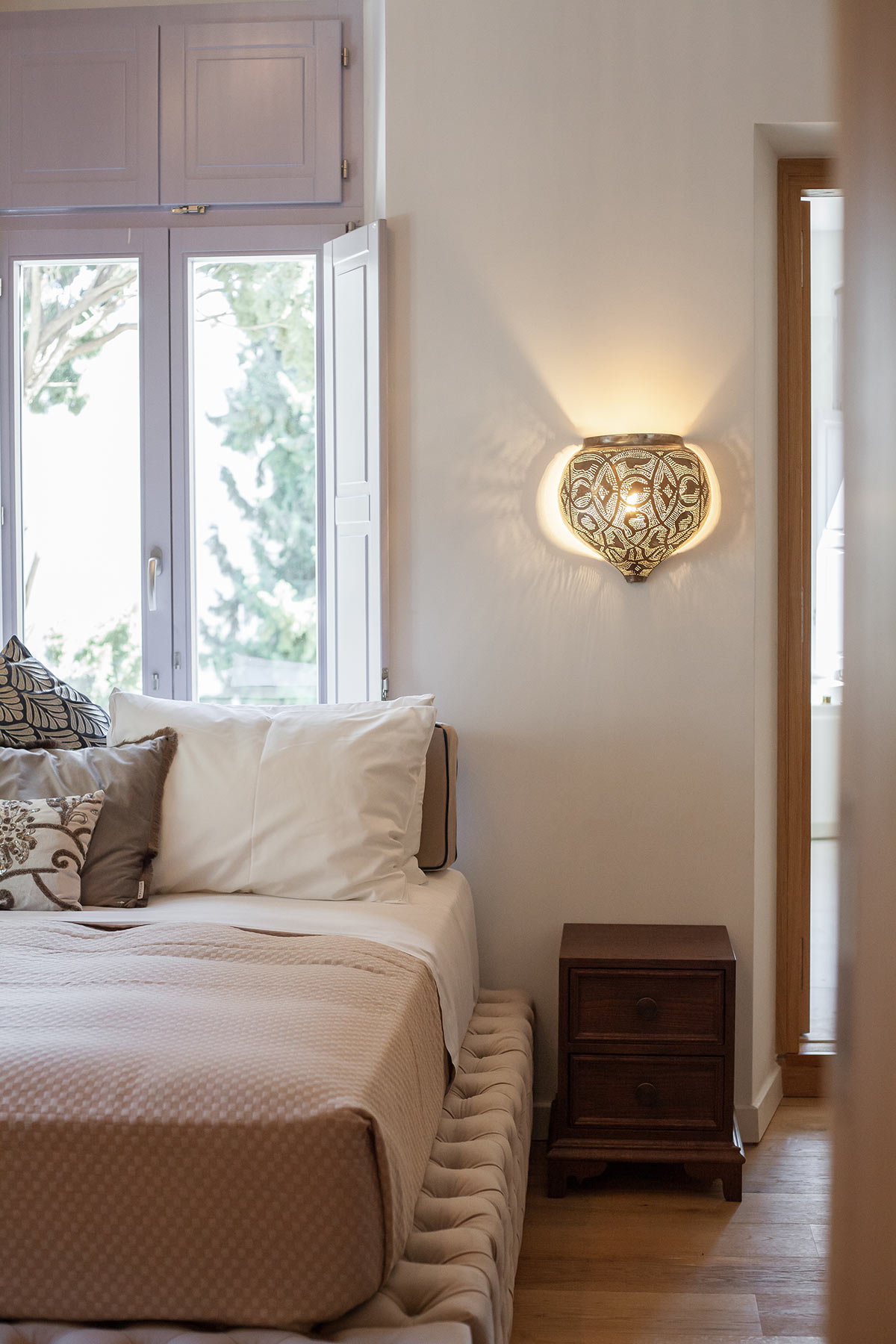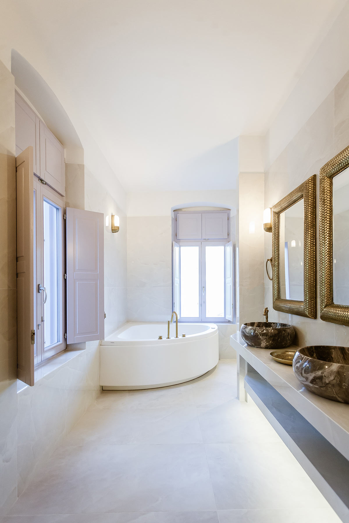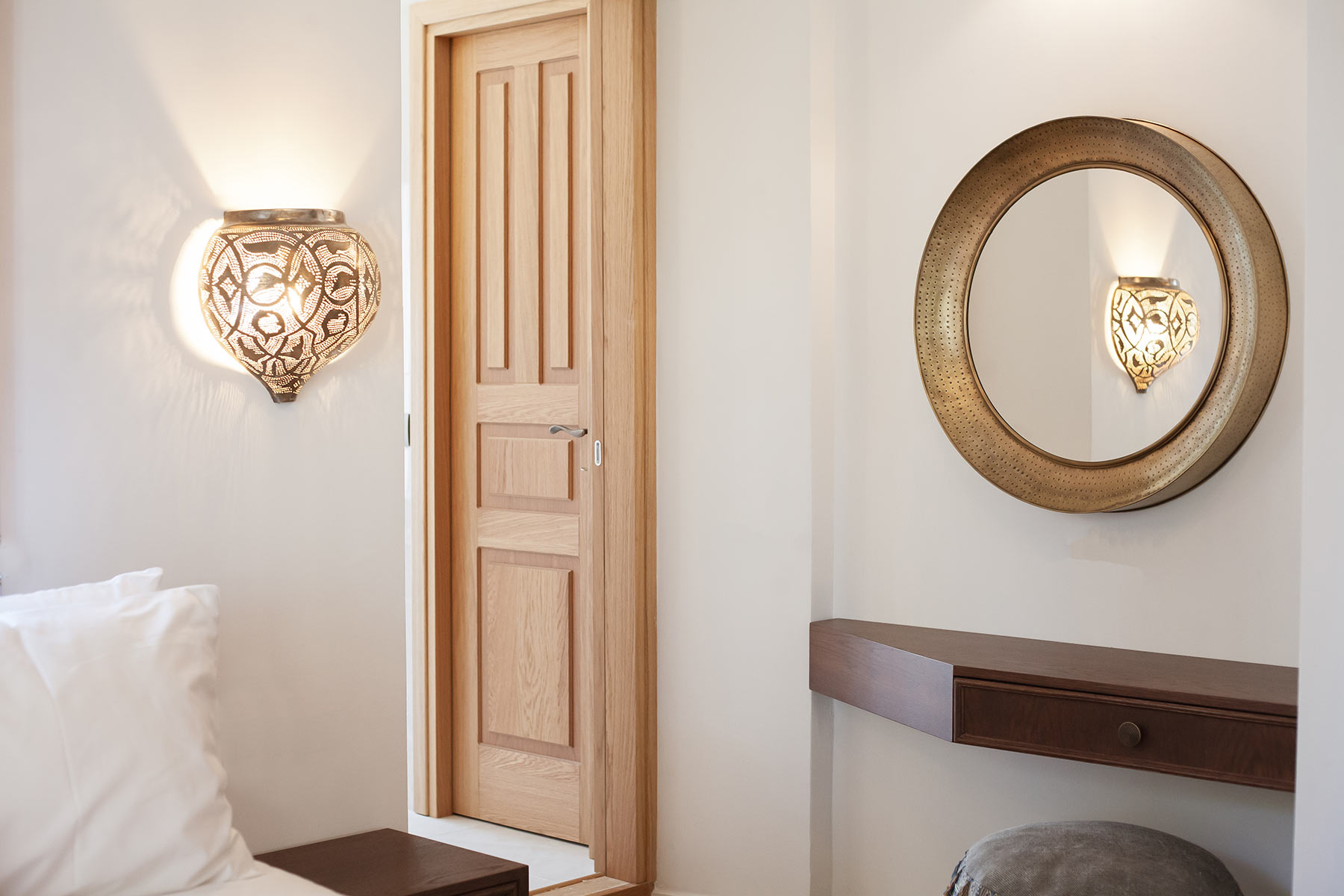 Once the mansion’s grand living room, this impressive suite retains its neoclassical charm with high ceilings, ornate details, and stately proportions. Ideal for families, it offers generous space, sophisticated furnishings, and a serene atmosphere. With an authentic sachnisi - a traditional, enclosed wooden balcony, a marble bathroom and hardwood floors, the Sachnisi Family Suite invites you to experience Rhodes in style.