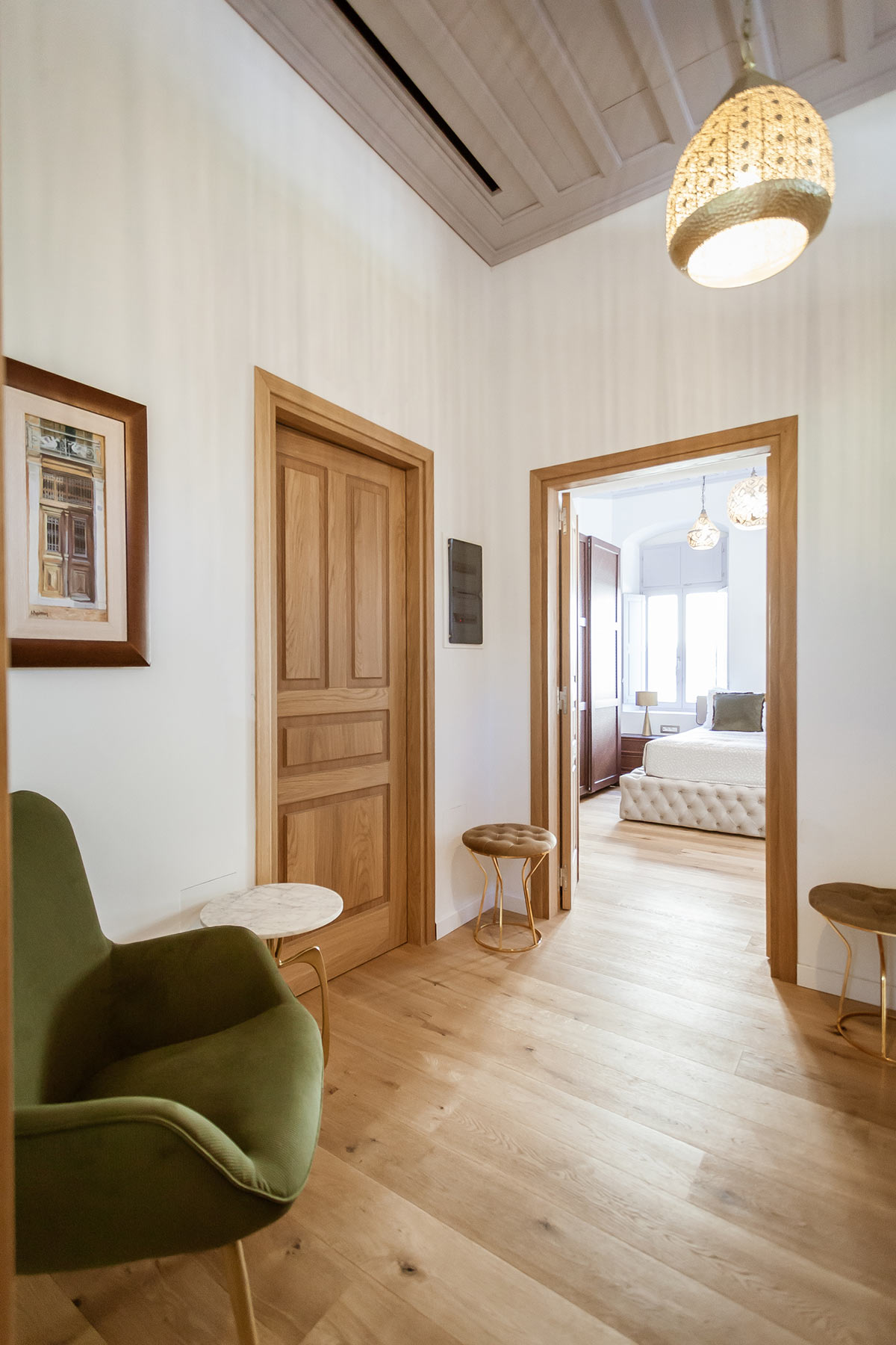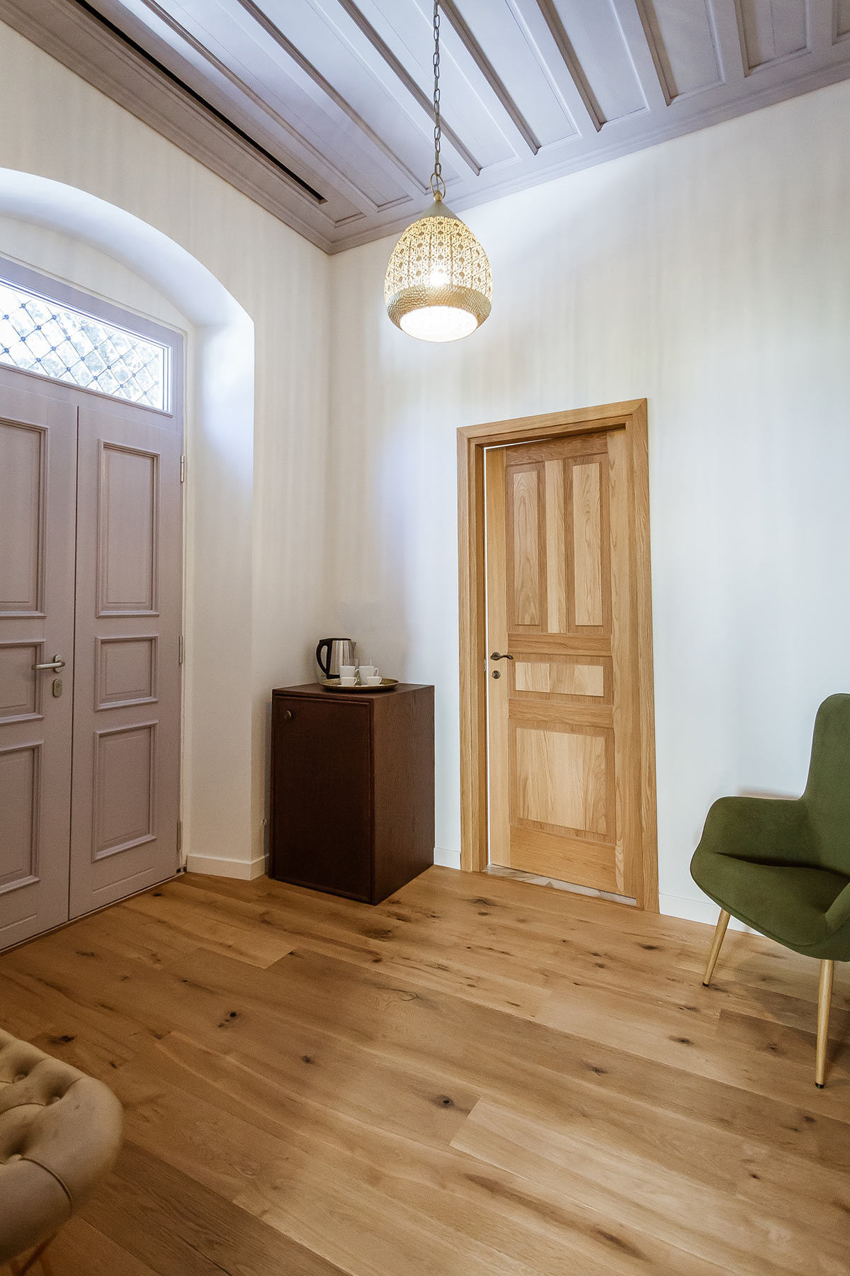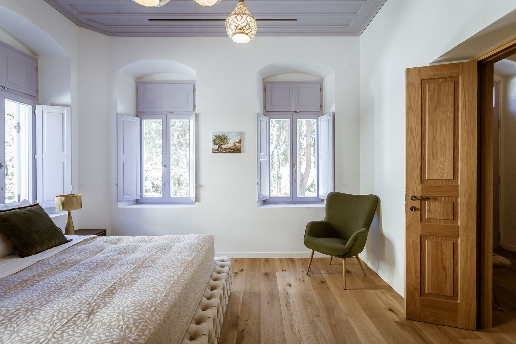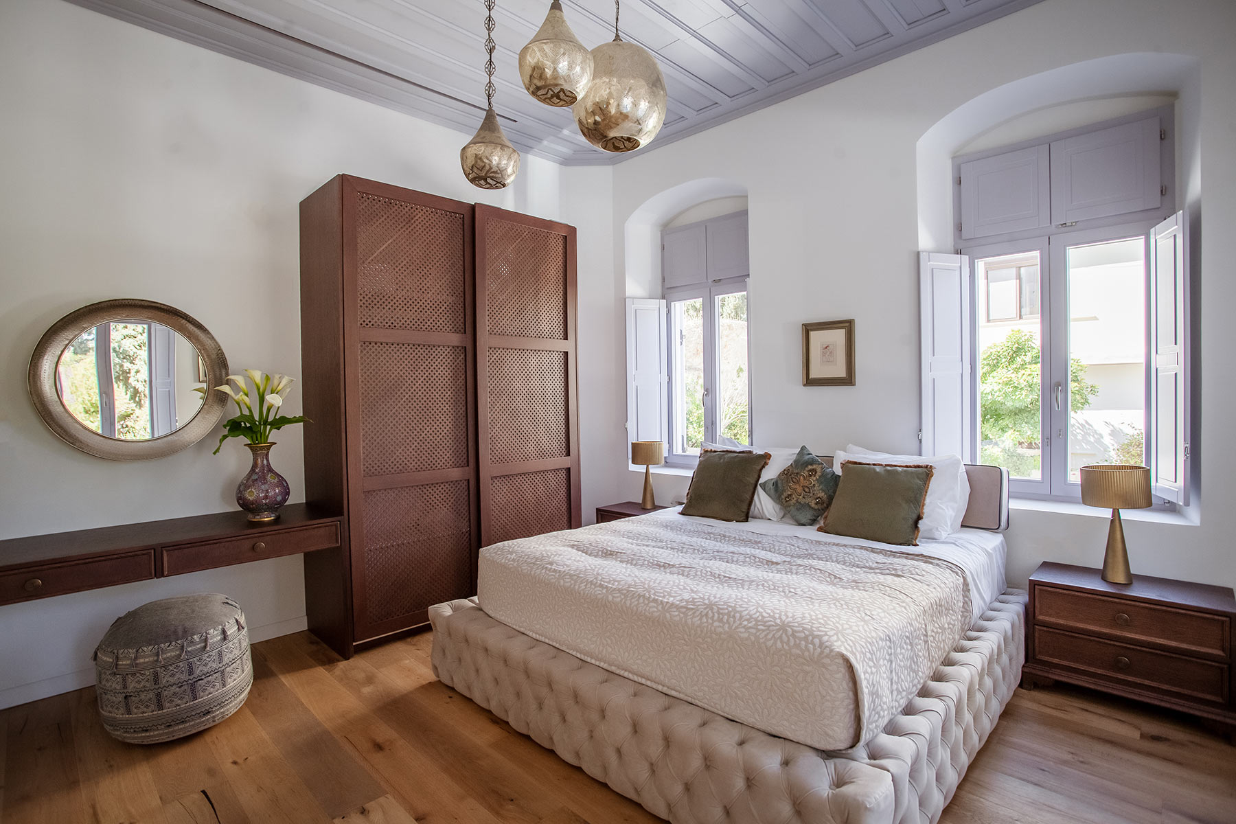 Inspired by the rituals of relaxation it once hosted, the Hammam Room is housed in the repurposed old steam room of the mansion. Rich textures, warm tones, and handcrafted details create a cocoon of comfort, while contemporary amenities complete this uniquely luxurious retreat within the historic charm of Aylin Luxury Suites.